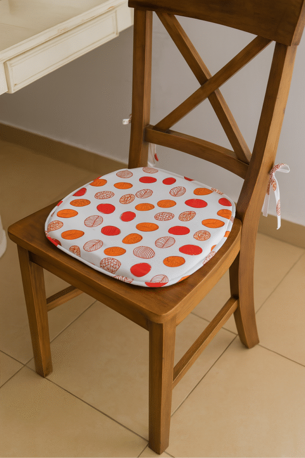 A comfortable cotton-fabric chair seat pad filled with supportive foam, designed for everyday seating. The tie-on straps keep it securely in place, making it ideal for dining chairs, cafés, patios, and home décor collections. Lightweight, durable, and easy to maintain.