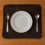 Elegant 100% cotton placemat featuring a dobby ribbed weave front, plain dyed back, and subtle fringes along the border. Lightweight, durable, and customizable in size, material, color, and quality — ideal for modern dining.
