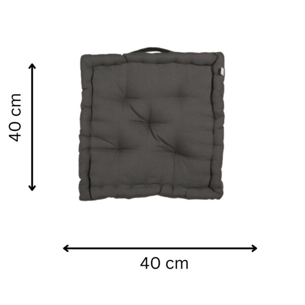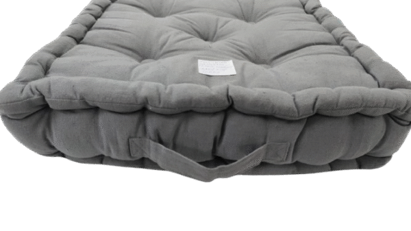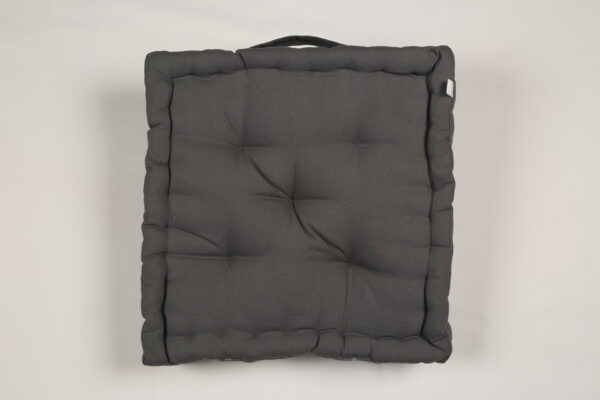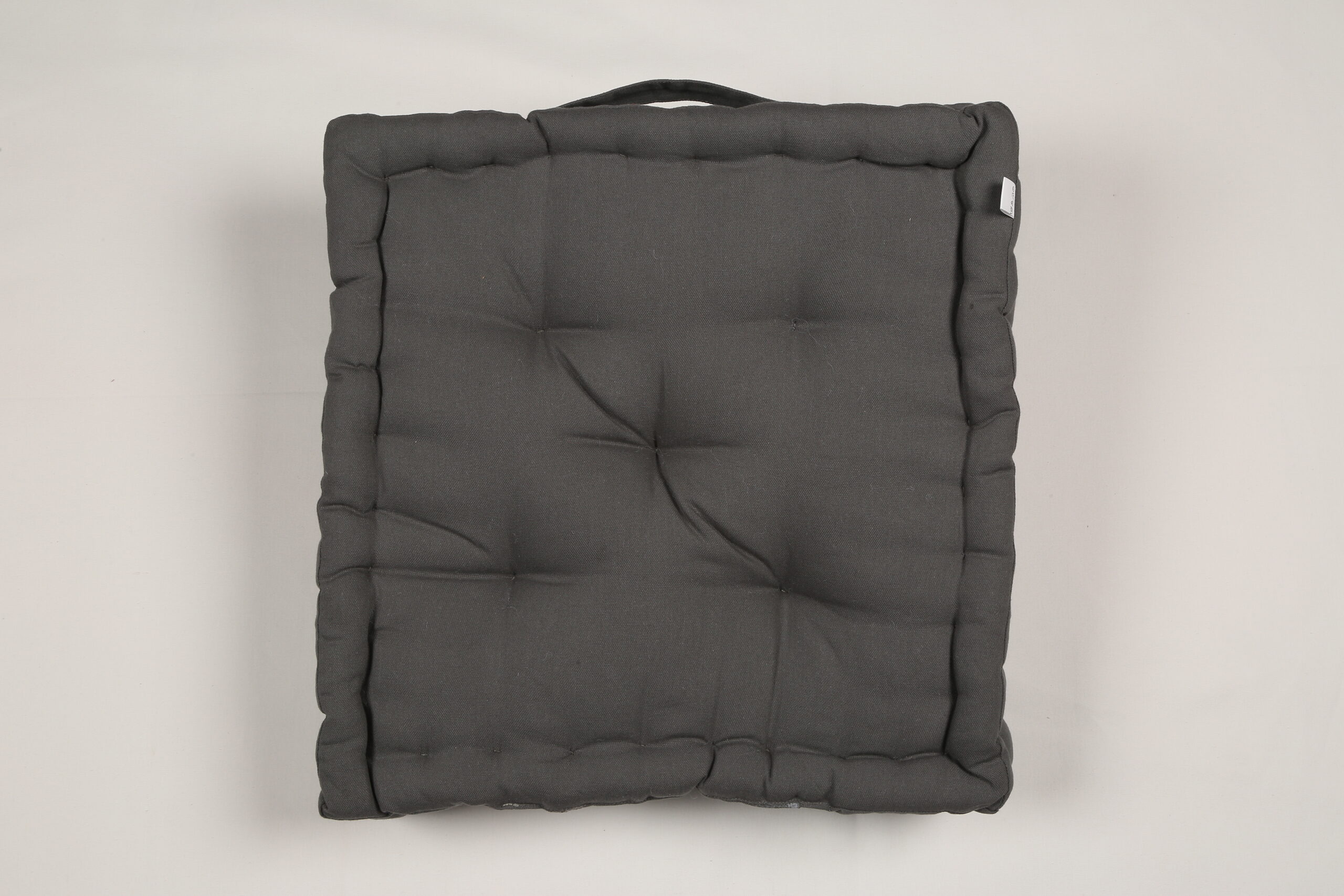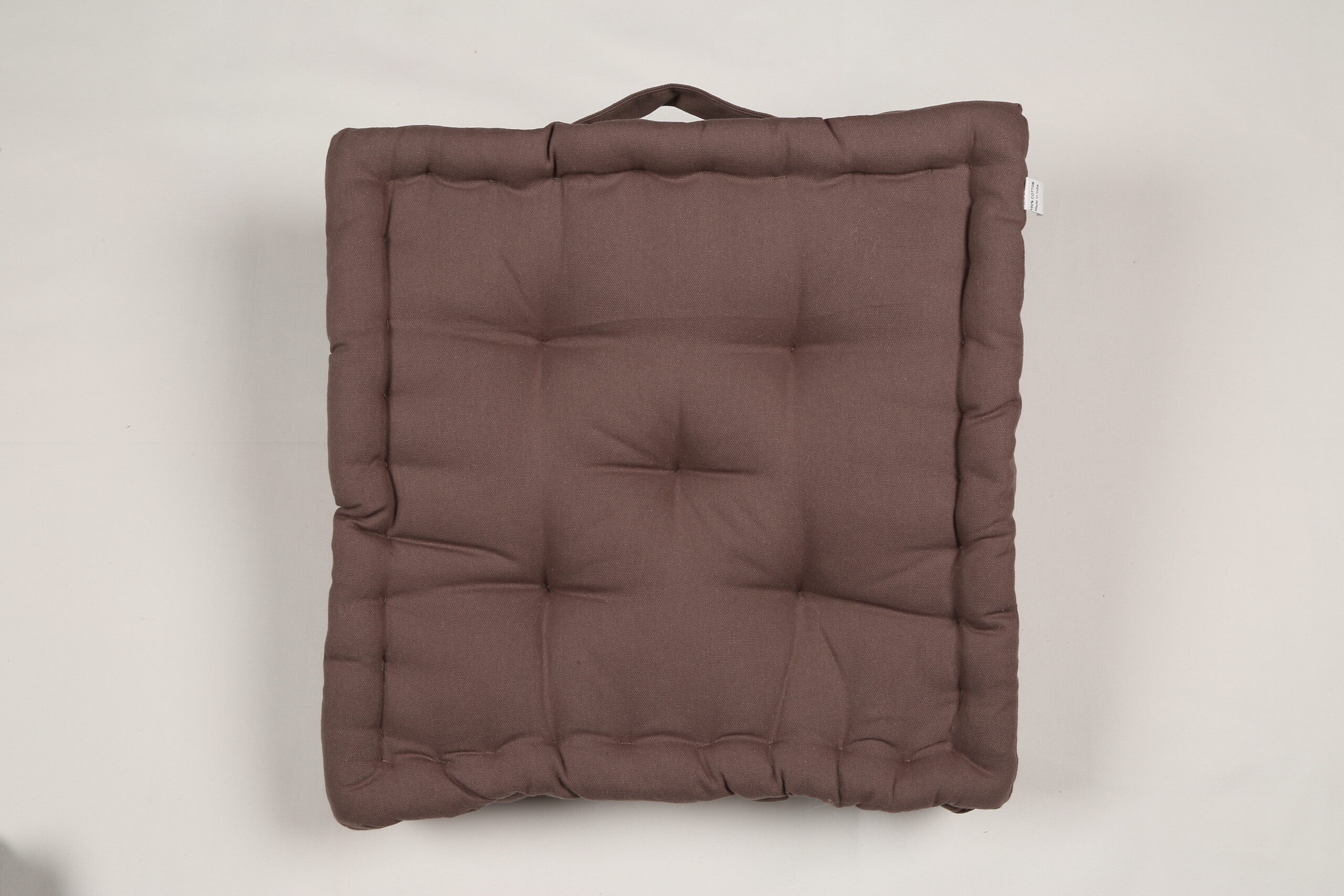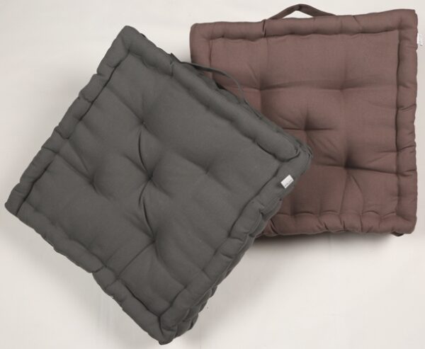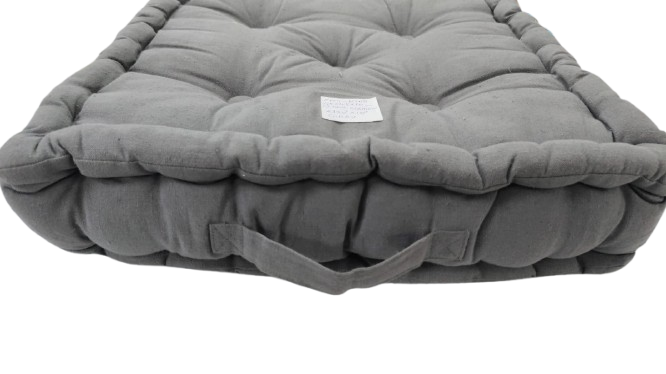 A premium-quality cotton fabric cushion filled with durable polyfill, designed for both floor seating and chair use. The tufted construction ensures even filling distribution, enhanced comfort, and long-lasting shape retention. Includes a convenient handle for easy carrying. Ideal for home décor brands, furniture retailers, cafés, outdoor setups, and lifestyle stores.