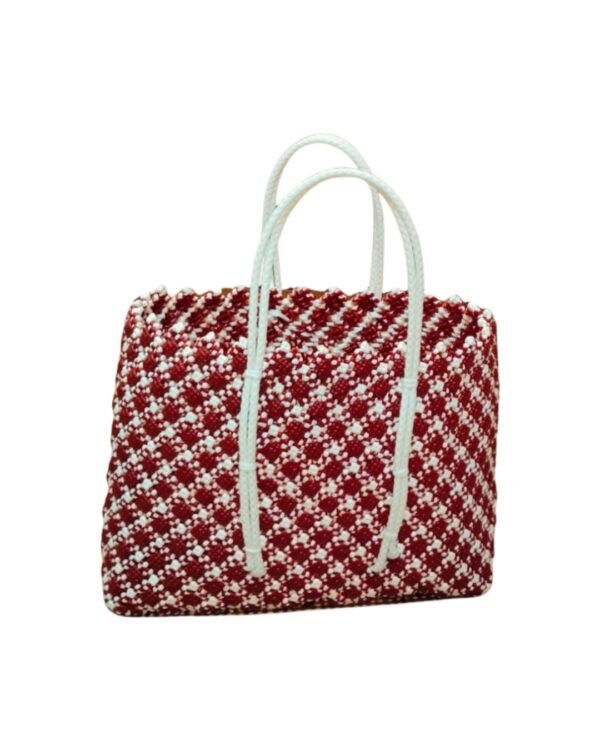 A beautifully handwoven red and white tote with soft rope handles. Lightweight yet durable, it’s ideal for daily essentials, shopping, or casual outings — a blend of comfort and craft in every weave.